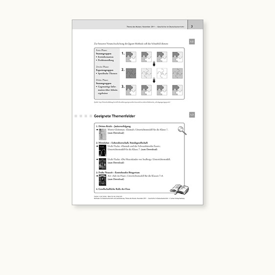 Abb.: Seite des ebenfalls als PDF monatlich erscheinenden »Thema des Monats« mit aktuellen pädagogischen Fragestellungen und Tipps und Anregungen für den Literaturunterricht
